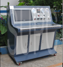 氣瓶內水壓試驗機(鋼瓶內測法水壓試驗機)壓力范圍0~45mpa,介質為靜止的清水,系統內置高壓泵,實現對壓力高的高壓打壓,高壓保壓,高壓泄壓的測試效果,具體的測試步驟為:注水→打壓→保壓→泄壓→輸出數據的過程。”是用于針對鋼瓶,氣瓶,非標纏繞瓶,軍工纏繞瓶的內水壓測試的范式,壓力范圍:0.1~45Mpa,介質為靜置的液體,采用思明特增壓泵完成對壓力的增壓,計算機壓力控制系統控制壓力和控制增壓速率。